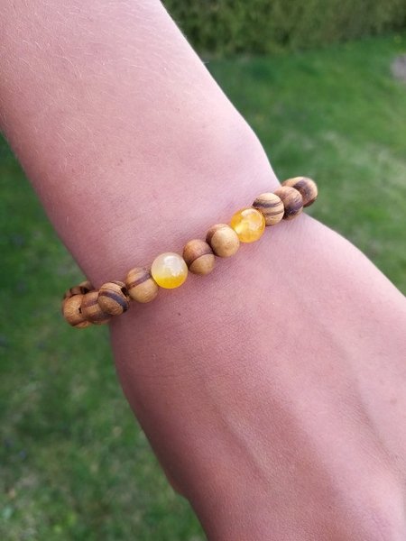 Achátový náramek se dřevem > varianta PÁNSKÁ, DÁMSKÁ, DĚTSKÁ