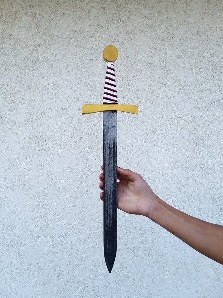 Dřevěný meč pro kluky ale i holky. Rukojeť je obvázaná barevným lanem.