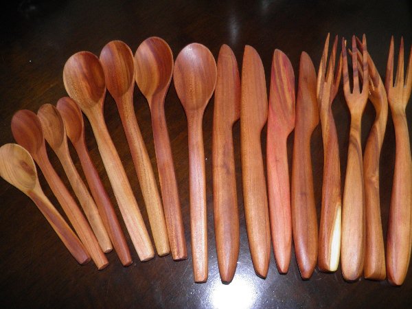 Dřevěný příborový set - Švestka > varianta Švestka