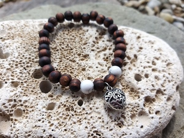 Náramek z ořešáku s magnezitem > varianta PÁNSKÁ, DÁMSKÁ, DĚTSKÁ