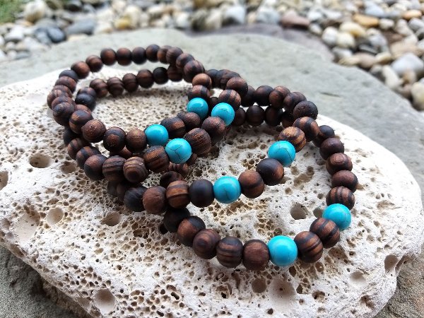 Náramek z ořešáku s tyrkysem > varianta PÁNSKÁ, DÁMSKÁ, DĚTSKÁ