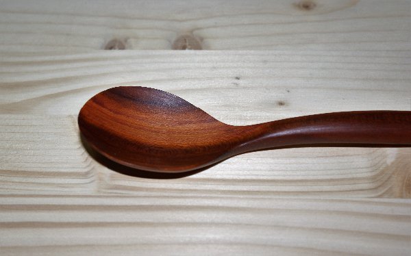 Dezertní dřevěná lžička vyrobená z jednoho kusu dřeva, určená přímo do kuchyně.