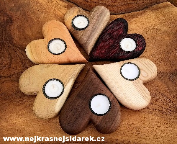 Krásný dřevěný svícen ve tvaru srdce je vyrobený z masivu - na výběr různé druhy dřeva!